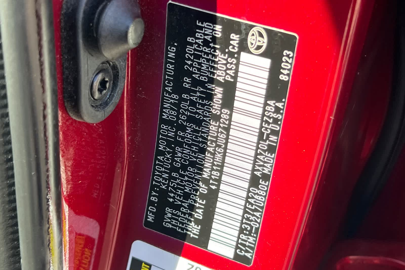 - VIN : 4T1B11HK6JU671289