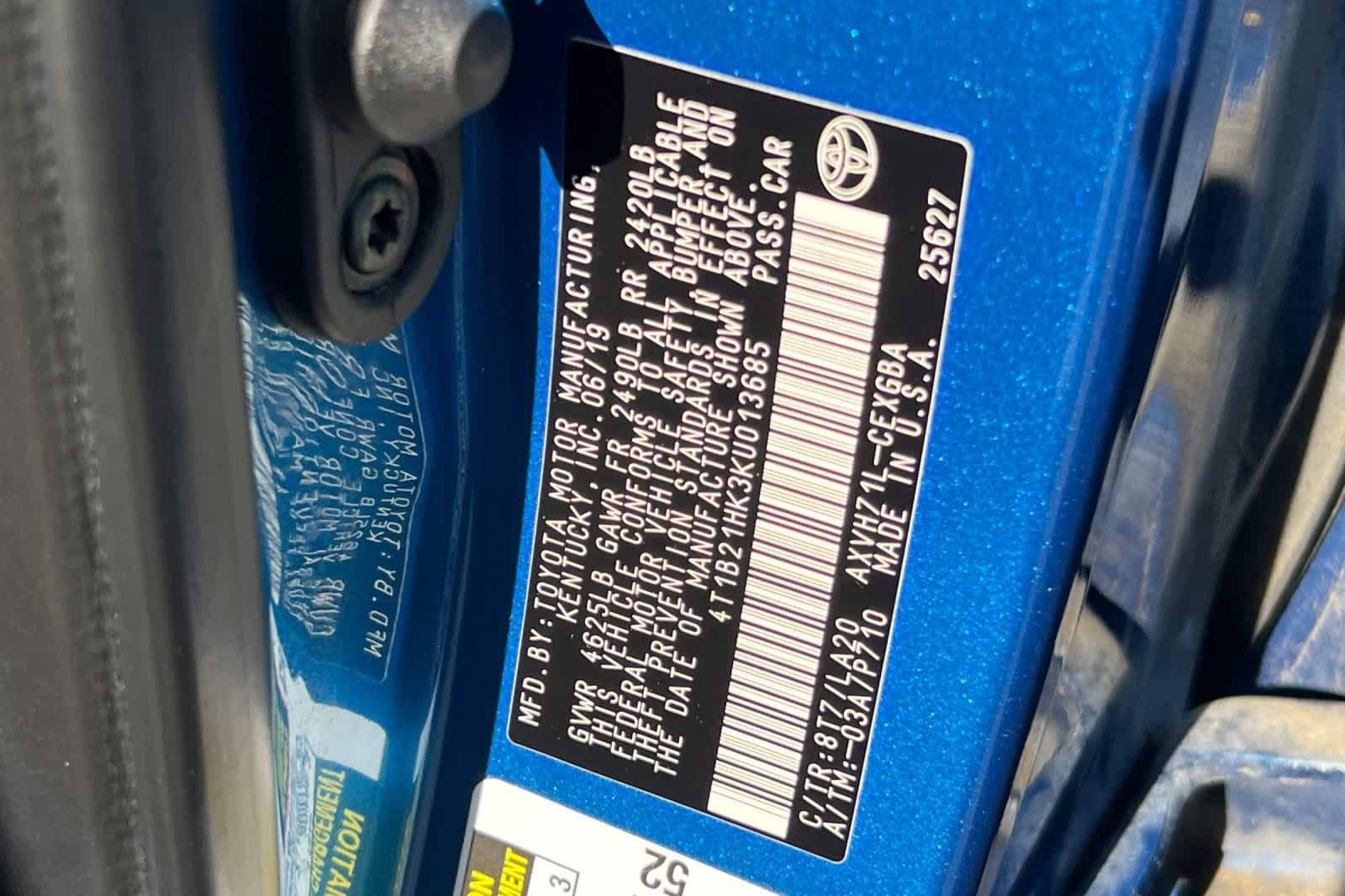 - VIN : 4T1B21HK3KU013685