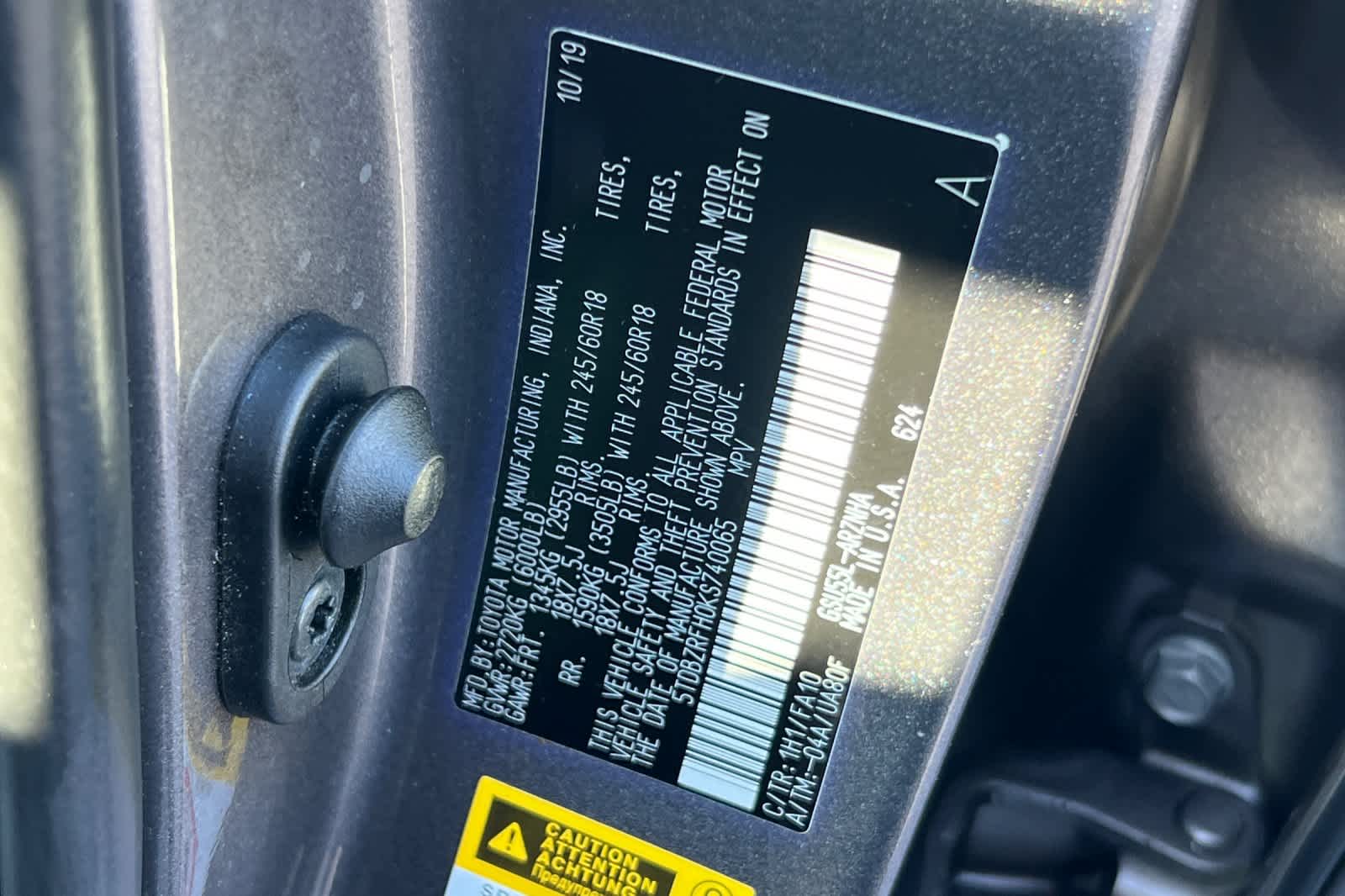 - VIN : 5TDBZRFH0KS740065