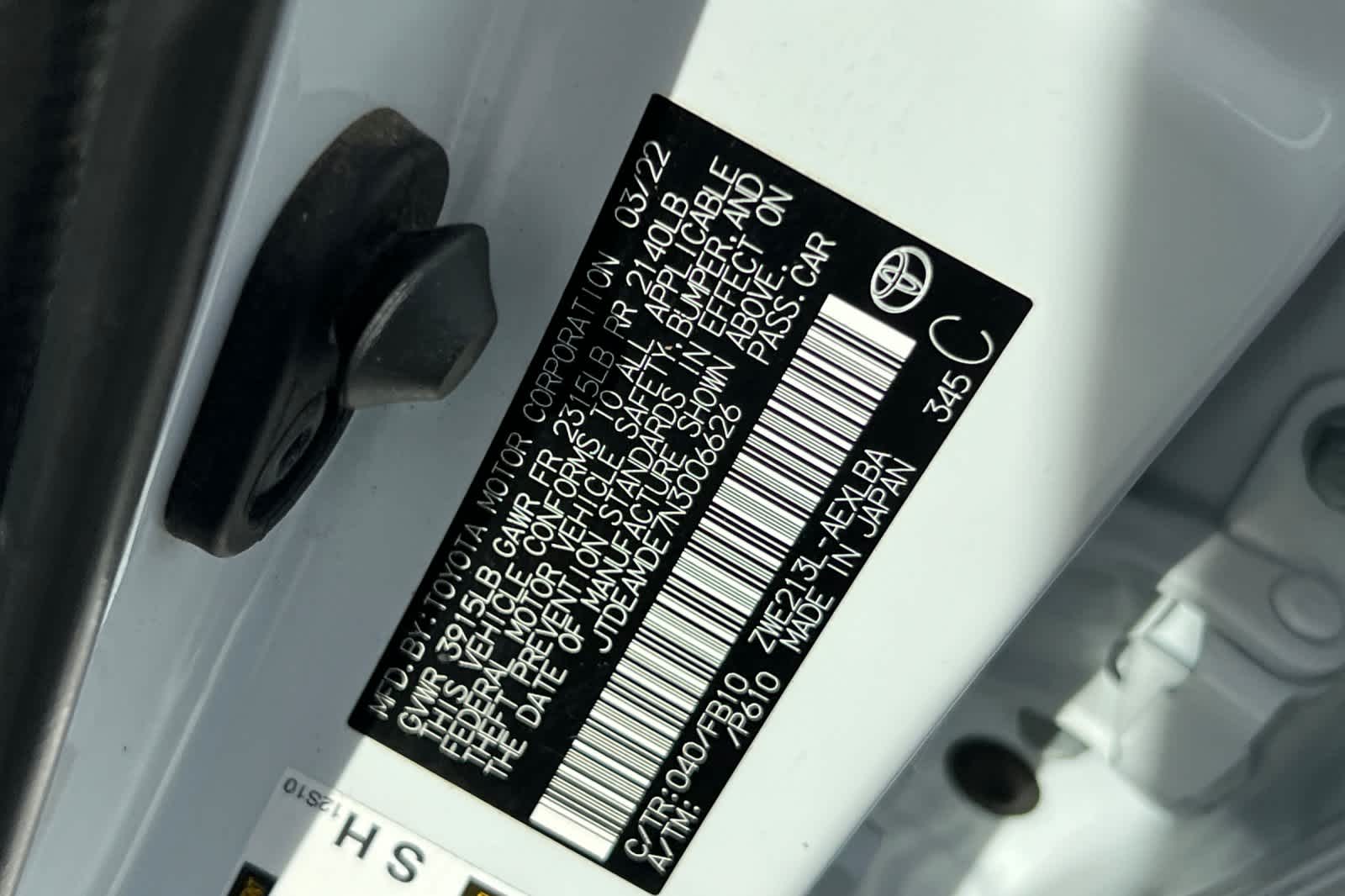- VIN : JTDEAMDE7N3006626
