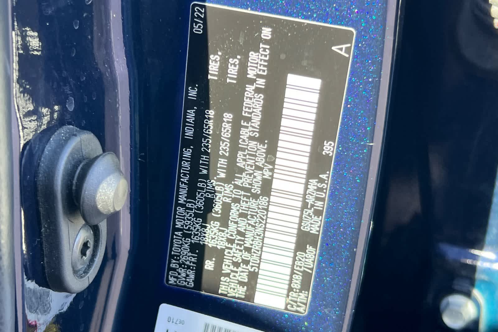 - VIN : 5TDHZRBH3NS220186