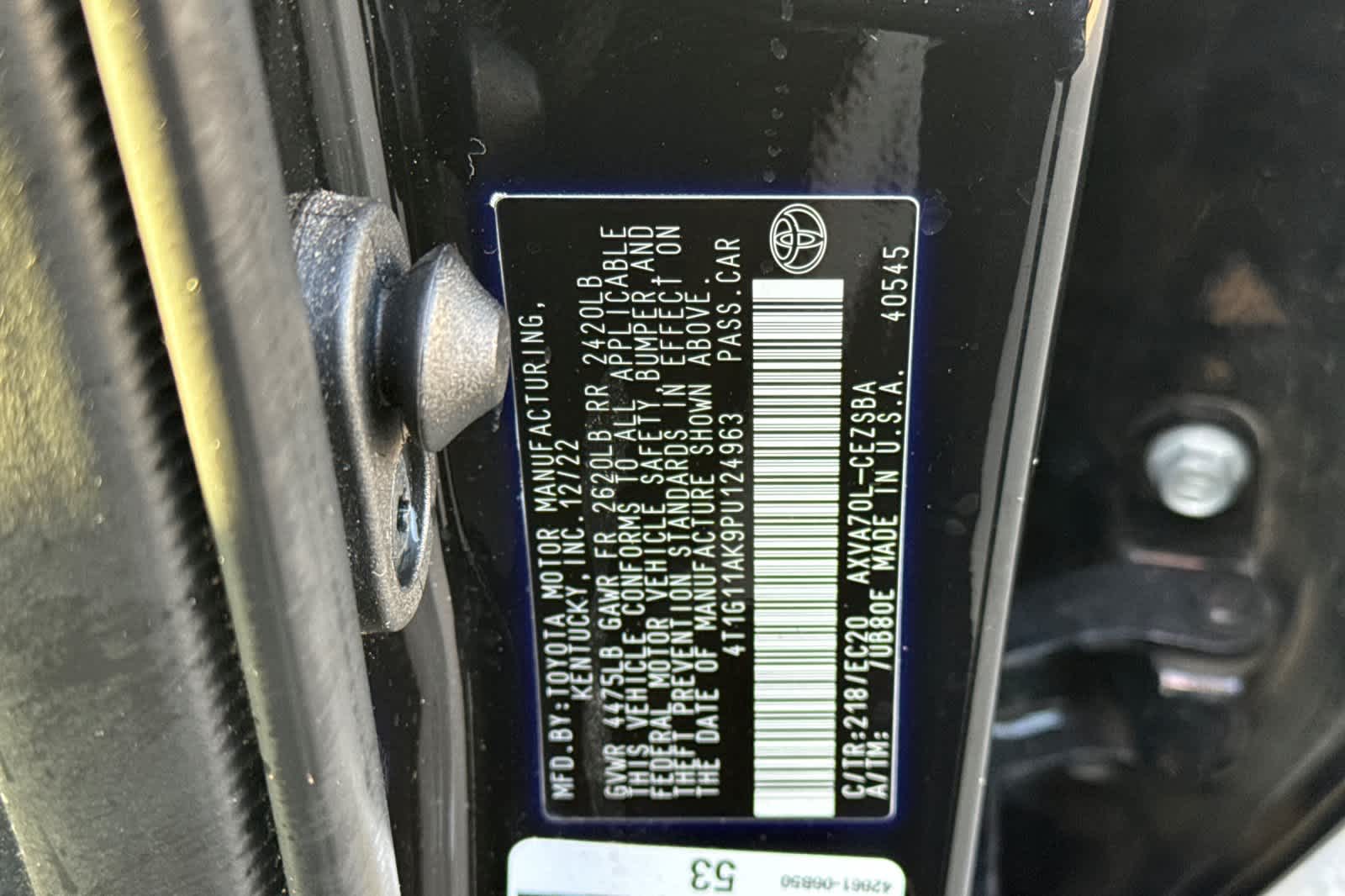 - VIN : 4T1G11AK9PU124963