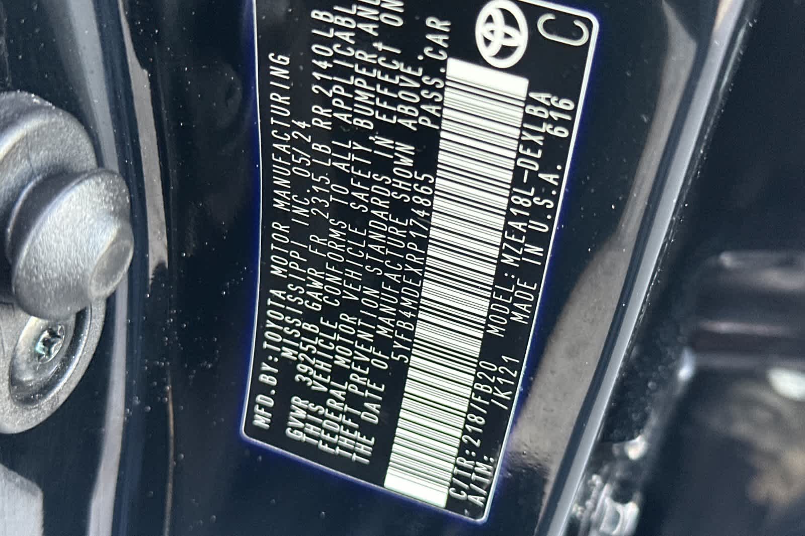 - VIN : 5YFB4MDEXRP174865