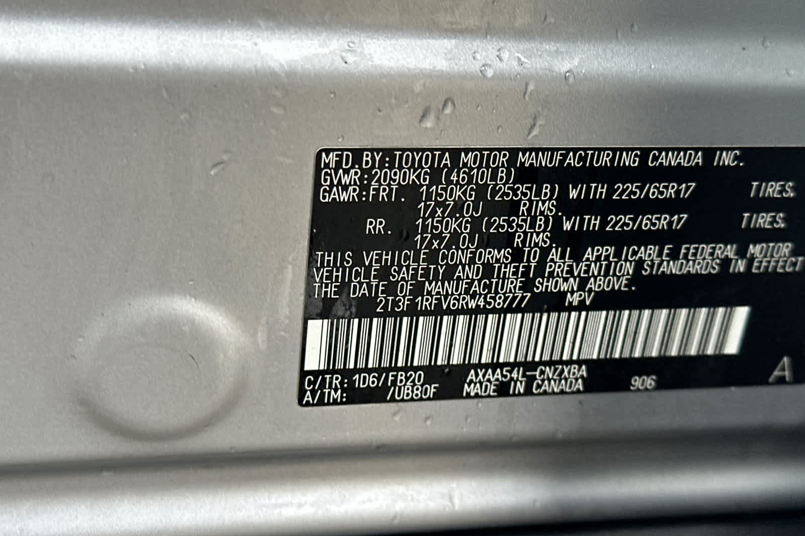 - VIN : 2T3F1RFV6RW458777
