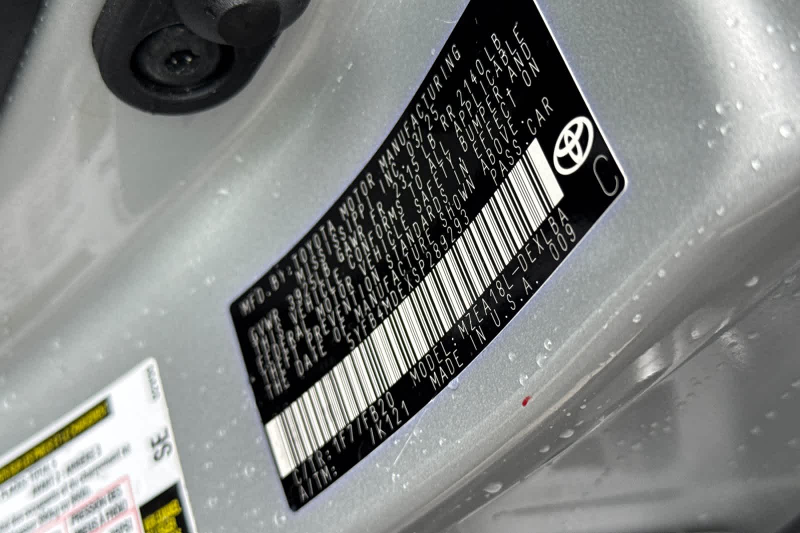 - VIN : 5YFB4MDEXSP289293