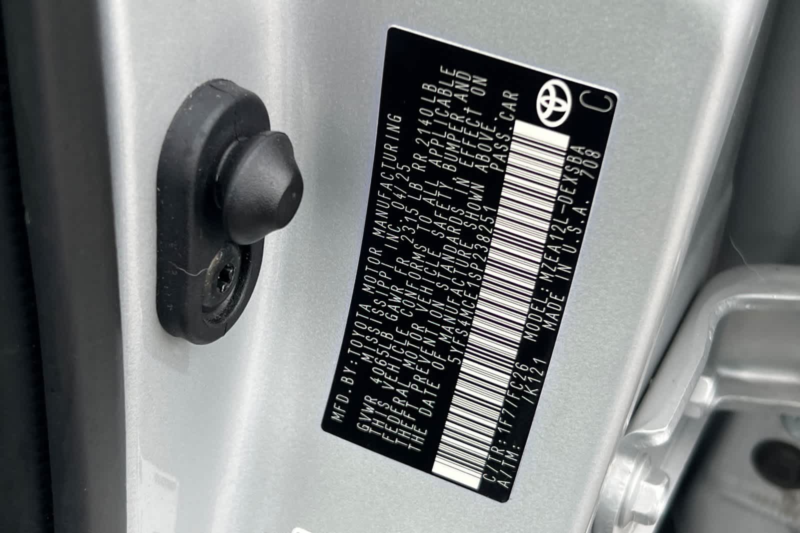 - VIN : 5YFS4MCE1SP238251