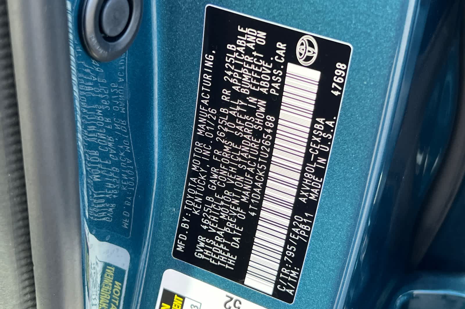 - VIN : 4T1DAACK5TU265488