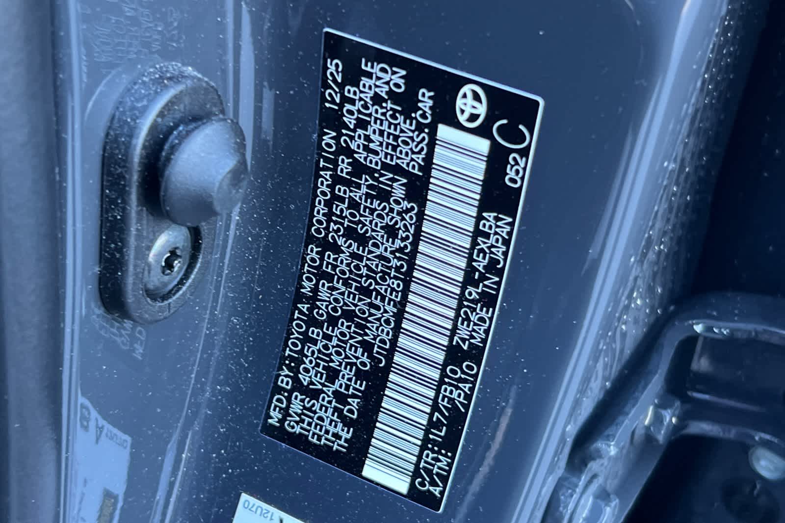 - VIN : JTDBCMFE8T3133263