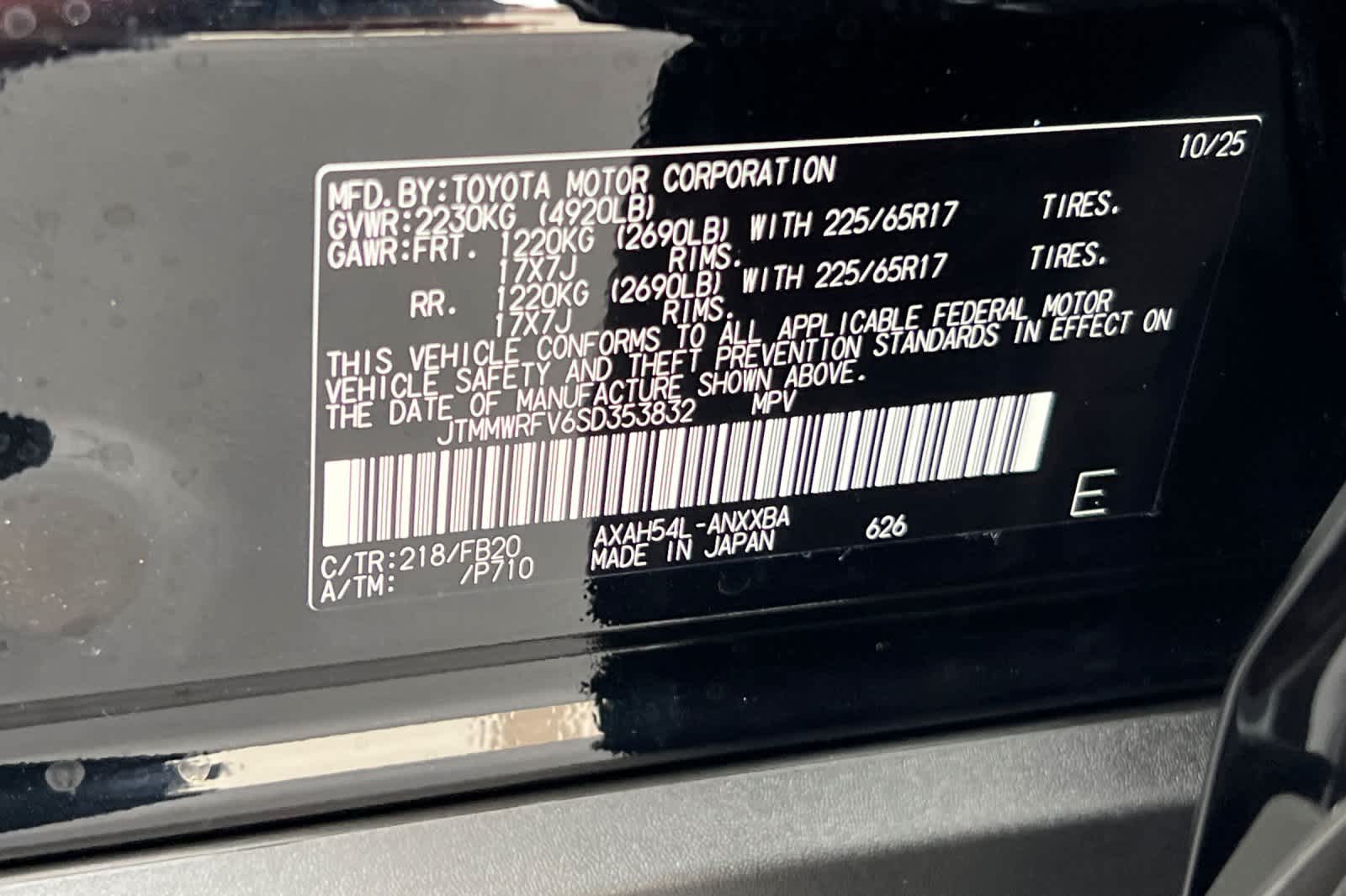 - VIN : JTMMWRFV6SD353832