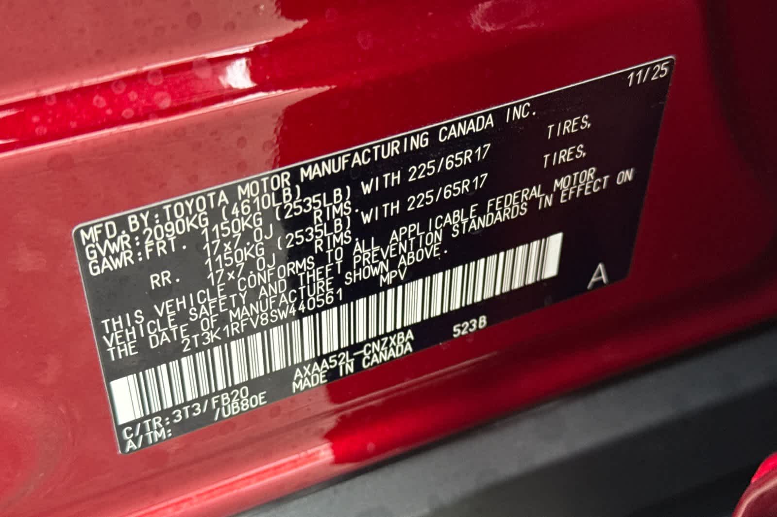 - VIN : 2T3K1RFV8SW440561