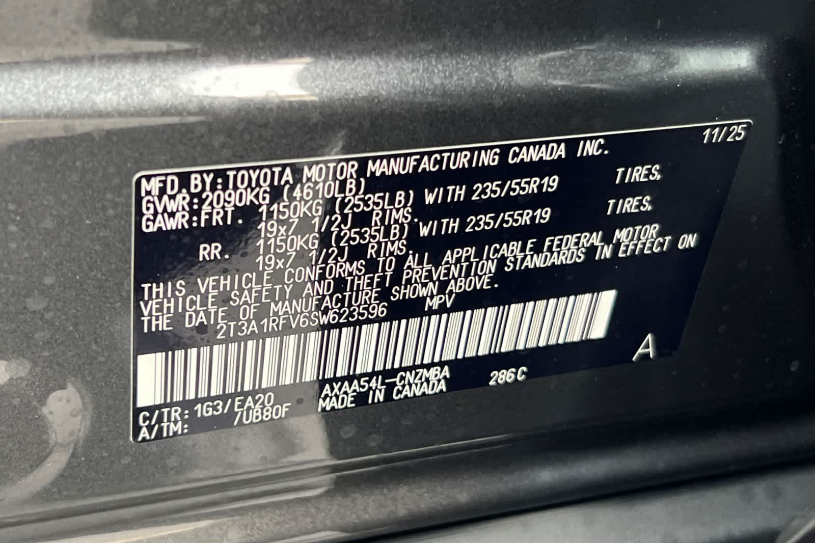 - VIN : 2T3A1RFV6SW623596