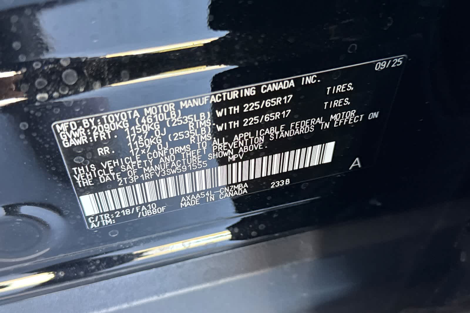 - VIN : 2T3P1RFV3SW591555