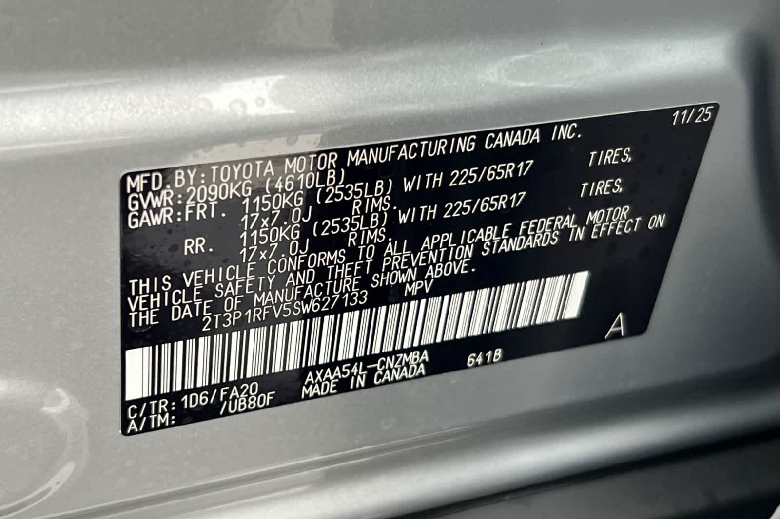 - VIN : 2T3P1RFV5SW627133