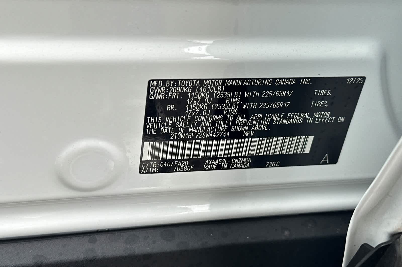 - VIN : 2T3W1RFV2SW442744