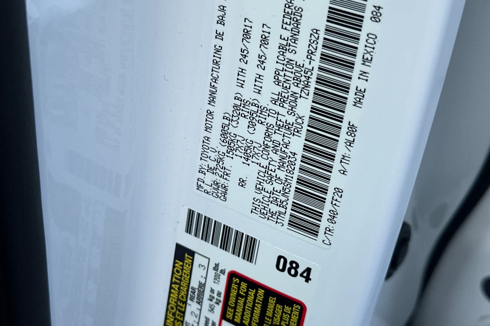 - VIN : 3TMLB5JN5SM182034