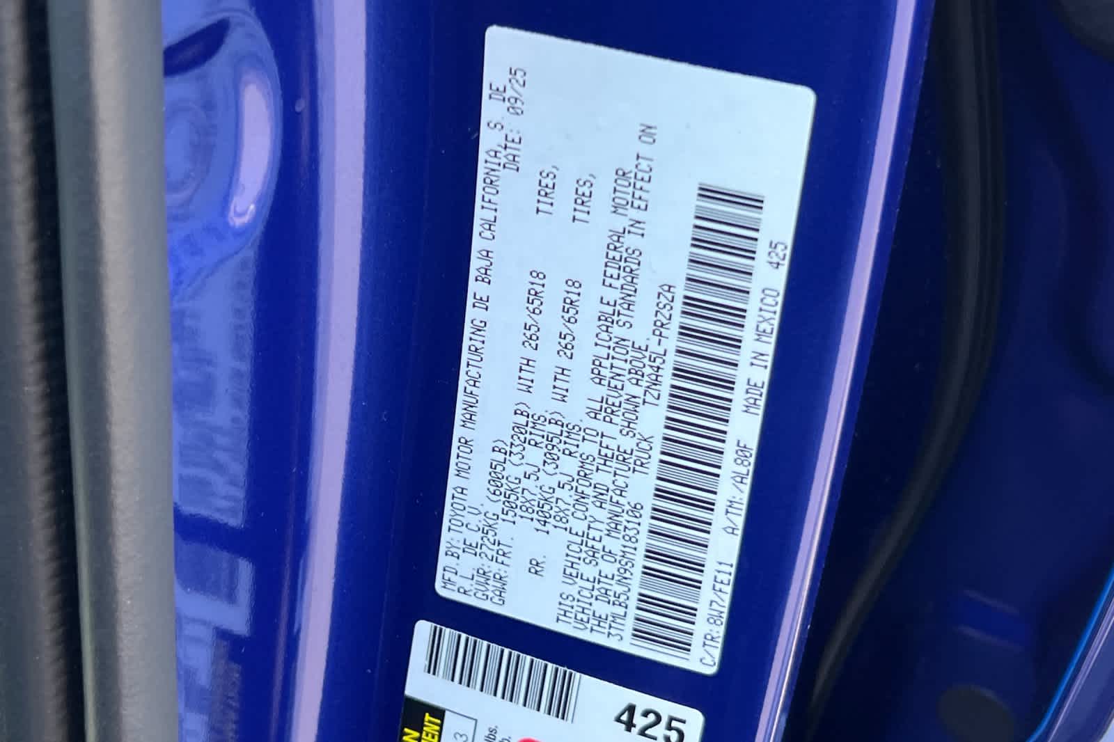 - VIN : 3TMLB5JN9SM183106