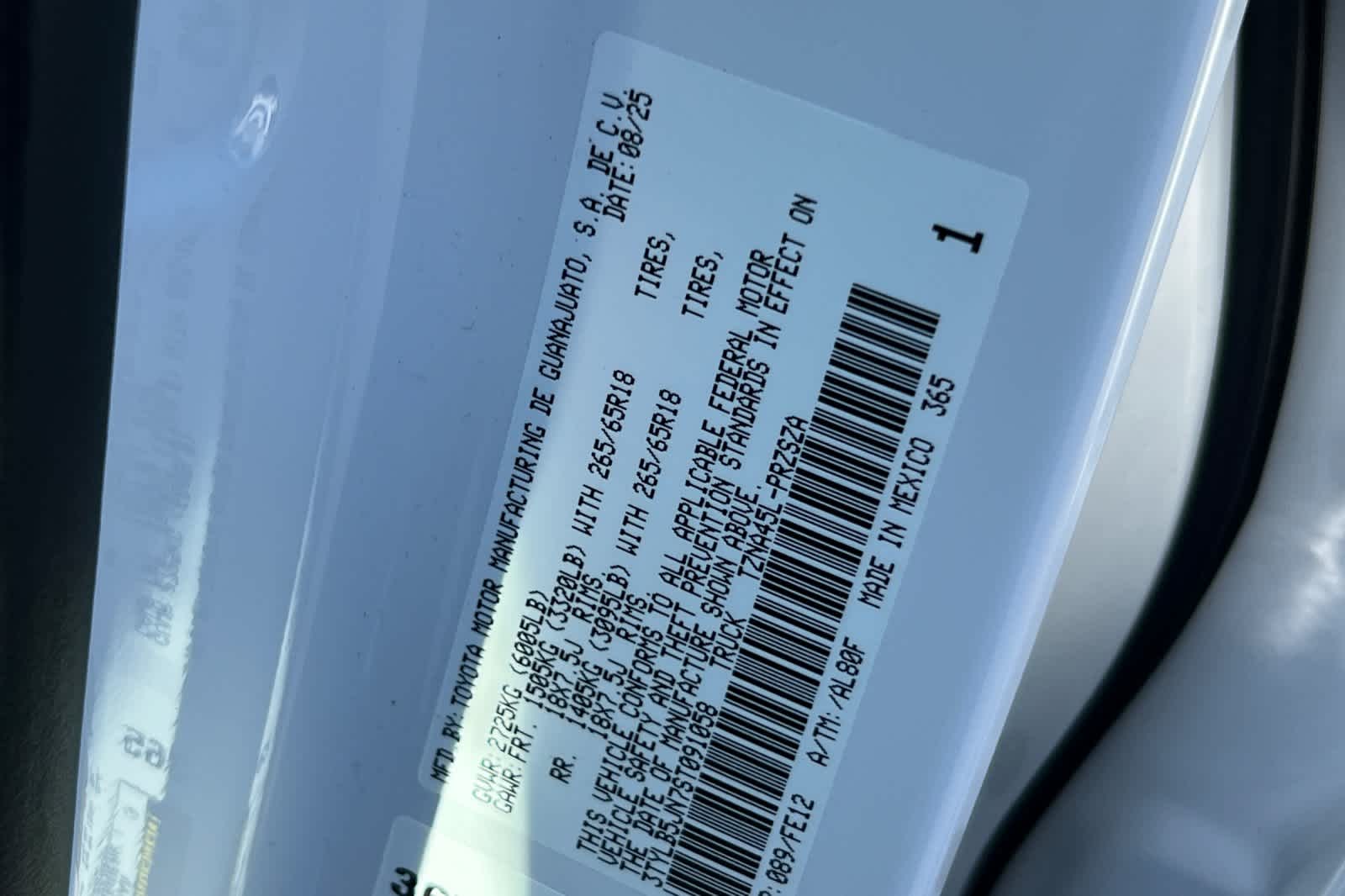 - VIN : 3TYLB5JN7ST091058