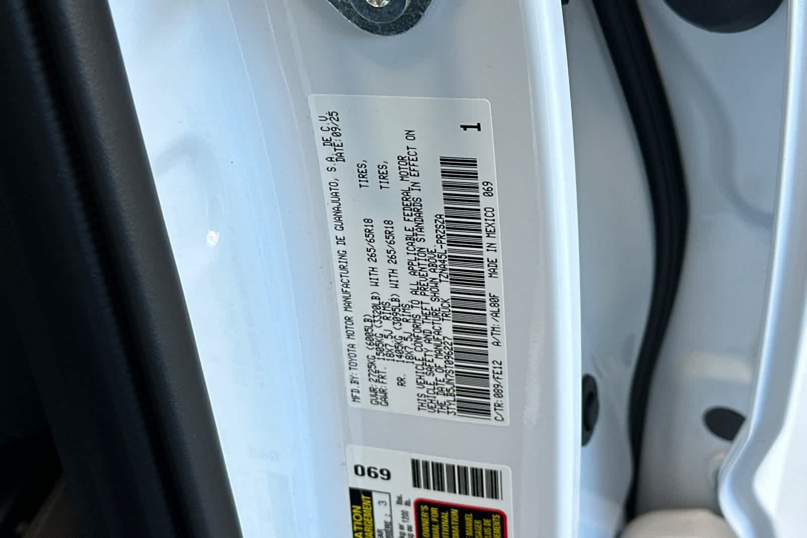 - VIN : 3TYLB5JN7ST096227
