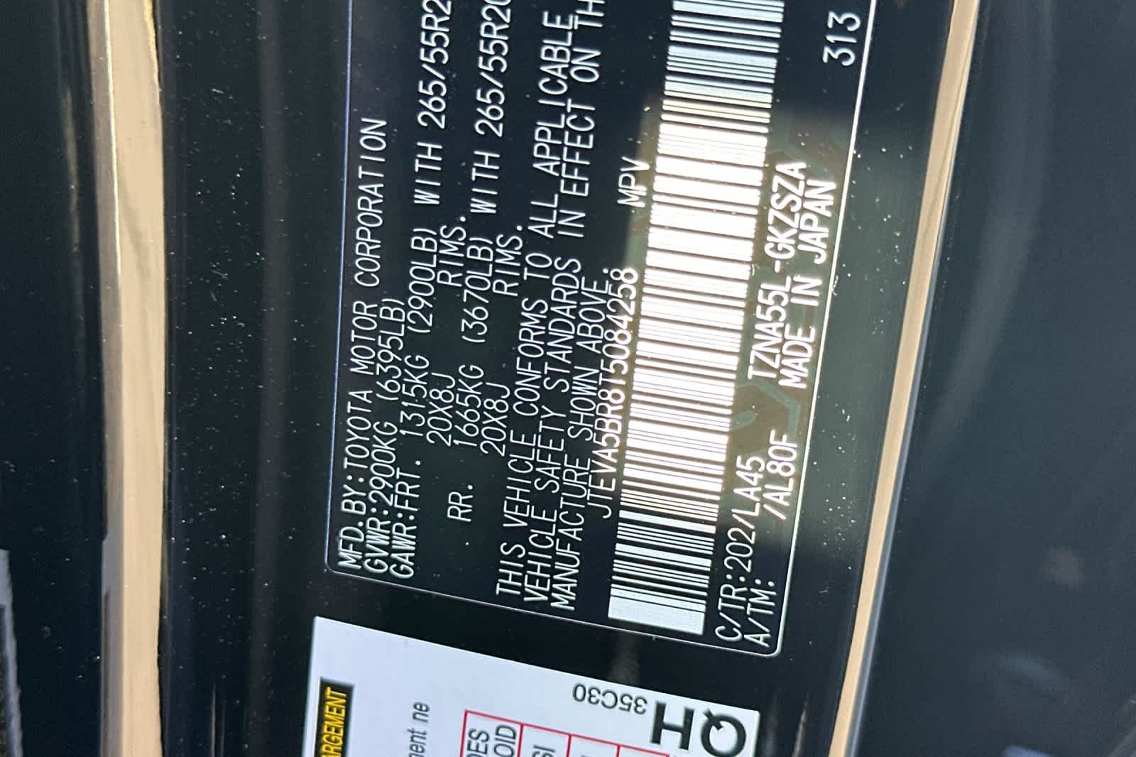 - VIN : JTEVA5BR8T5084258