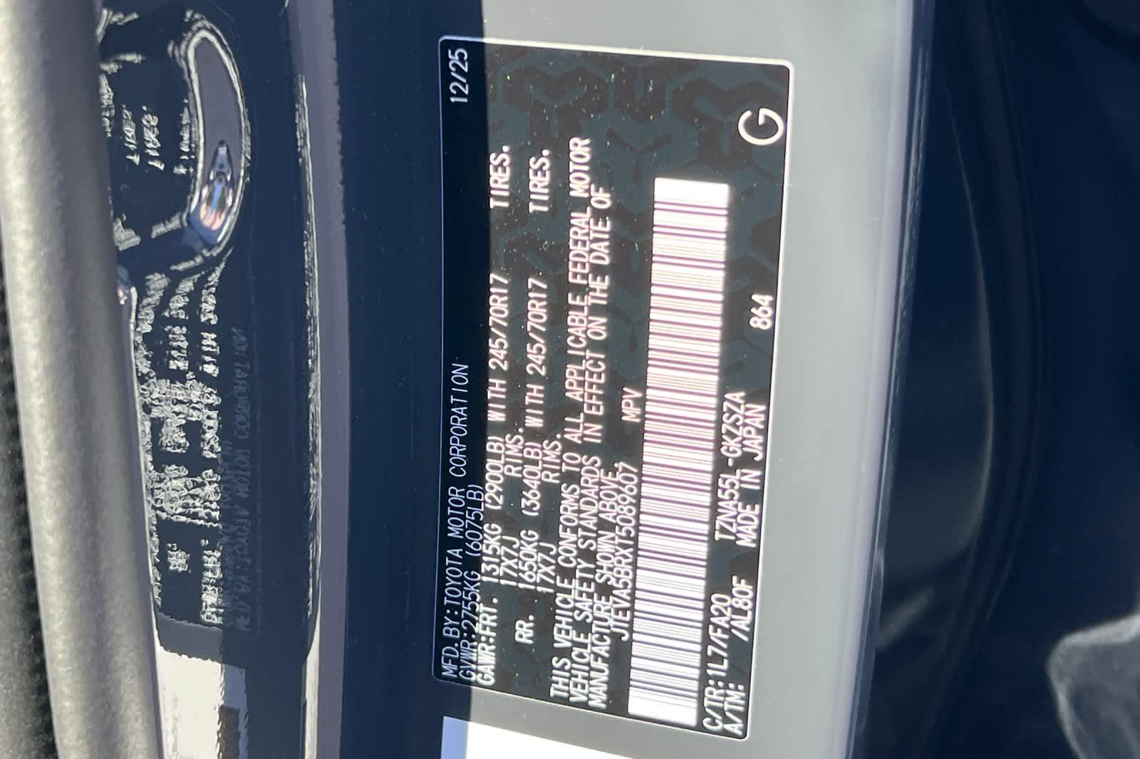 - VIN : JTEVA5BRXT5089607