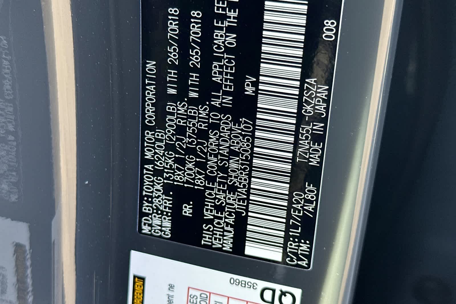 - VIN : JTEVA5BR3T5085107