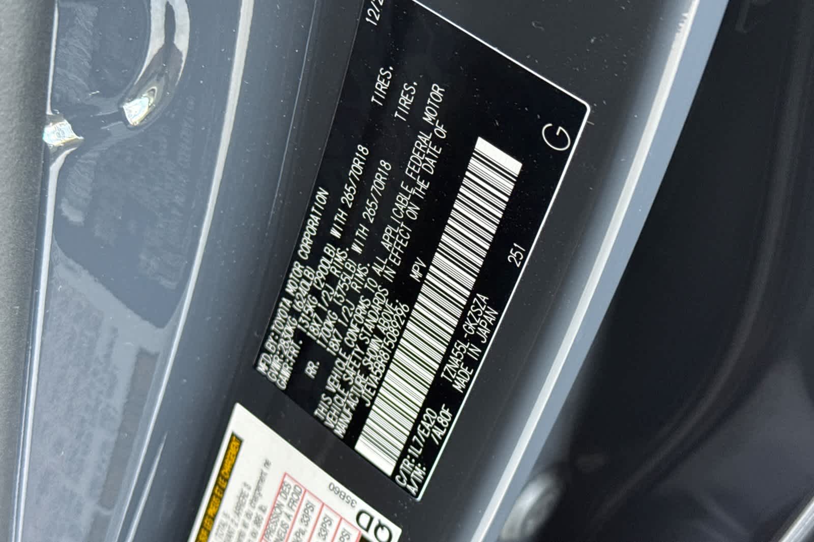 - VIN : JTEVA5BR8T5089296