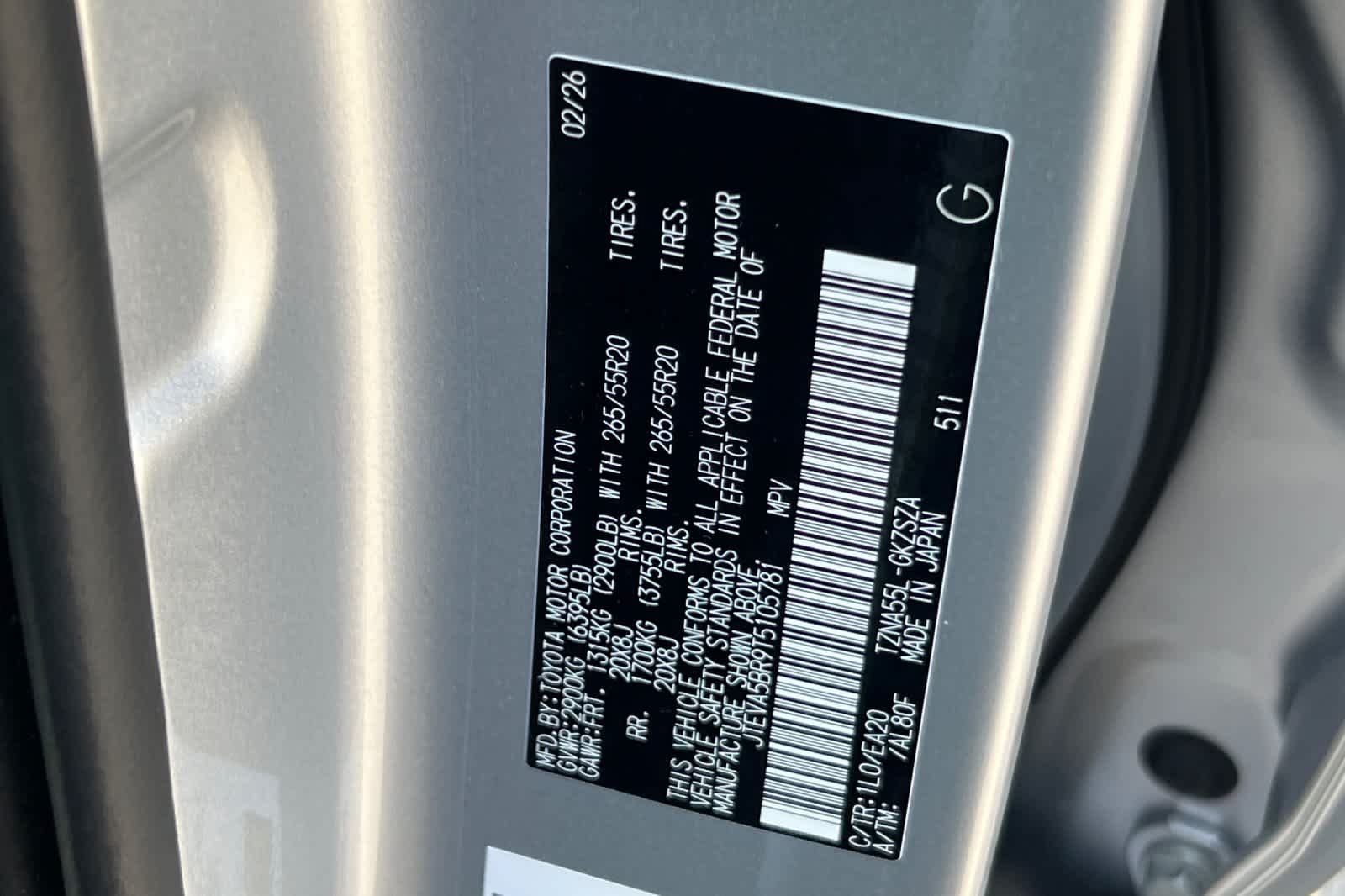 - VIN : JTEVA5BR9T5105781