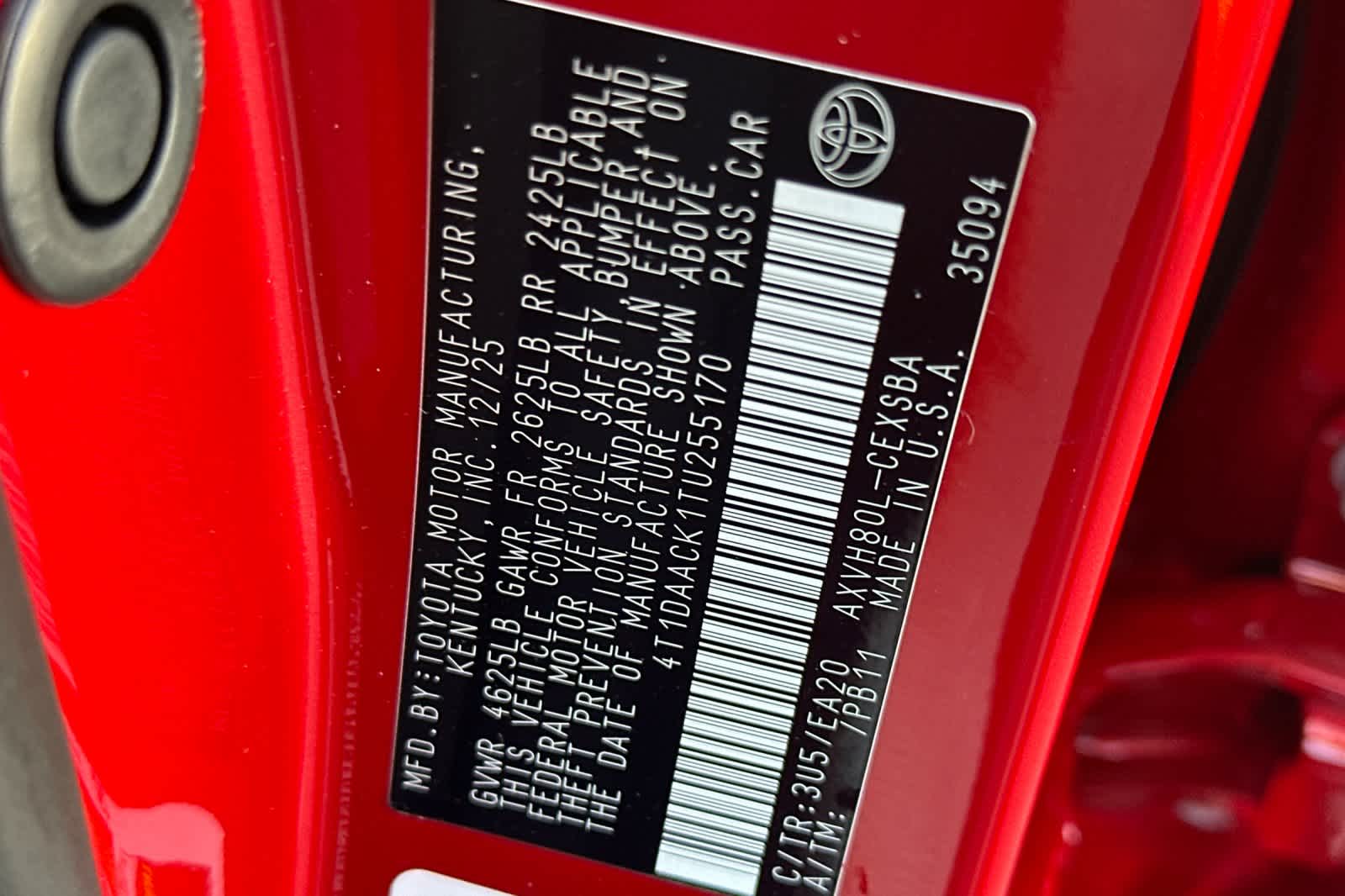 - VIN : 4T1DAACK1TU255170