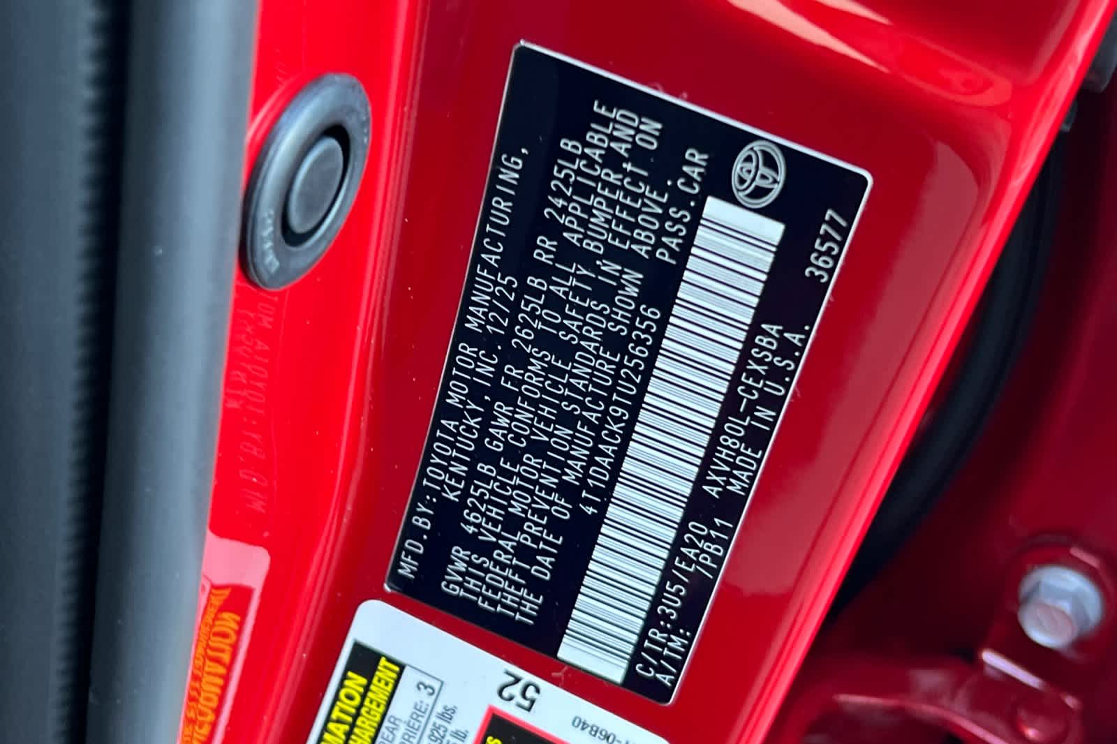 - VIN : 4T1DAACK9TU256356