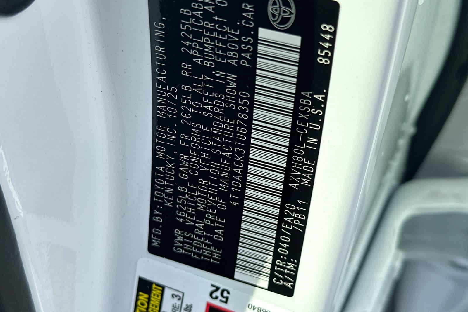 - VIN : 4T1DAACK3TU678350