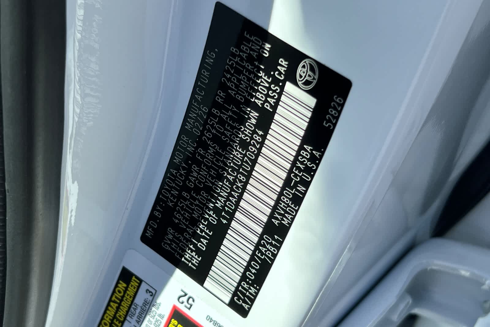 - VIN : 4T1DAACK8TU709284