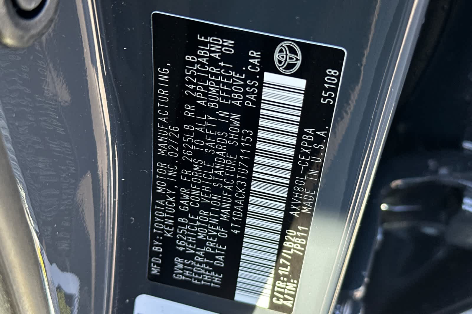 - VIN : 4T1DAACK3TU711153