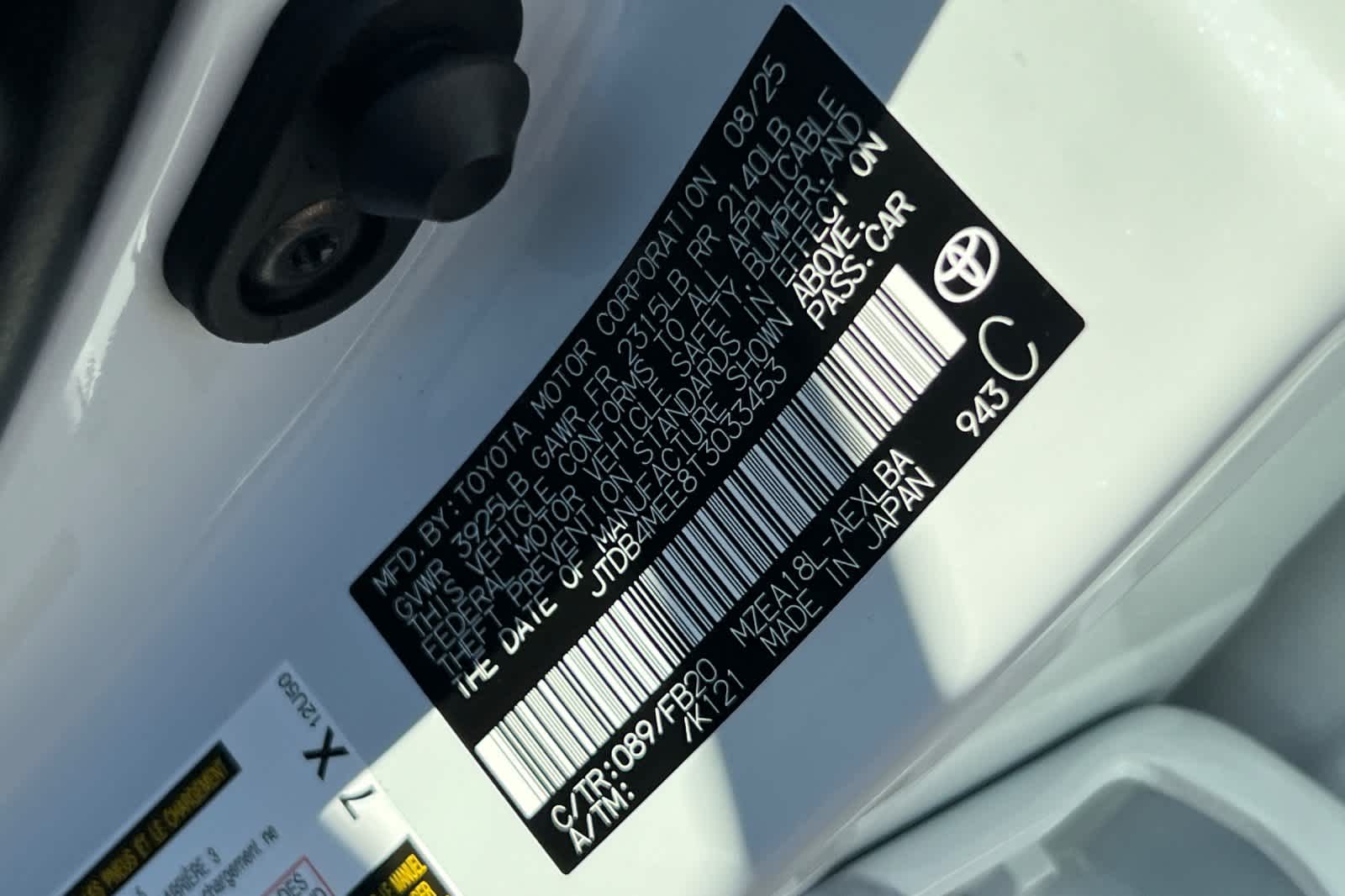 - VIN : JTDB4MEE8T3033453