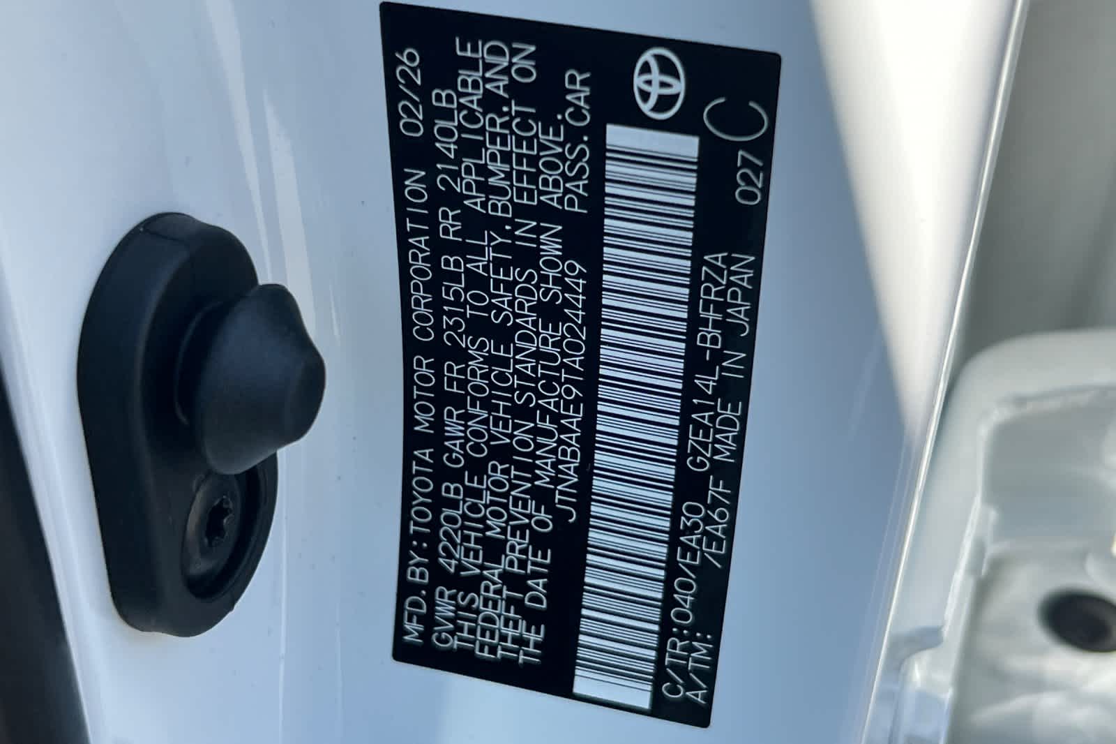 - VIN : JTNABAAE9TA024449
