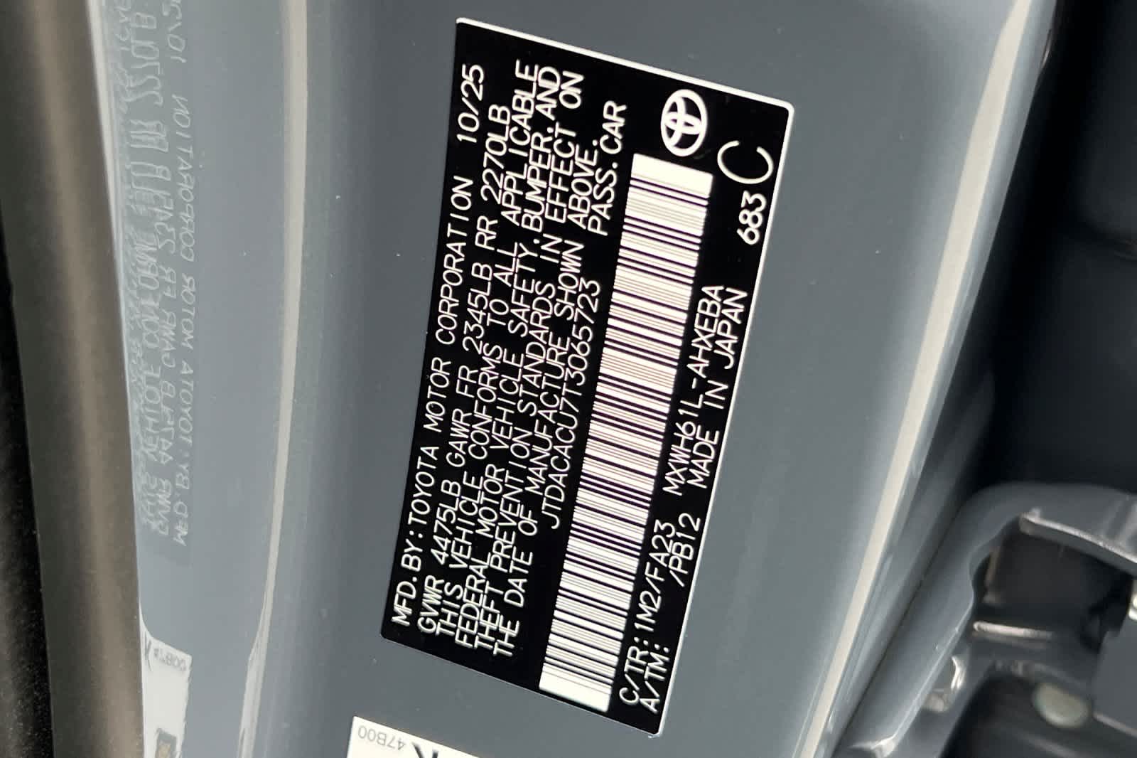 - VIN : JTDACACU7T3065723