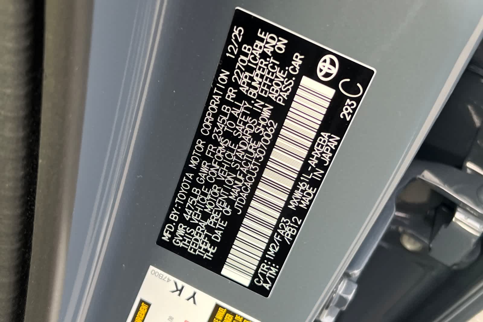- VIN : JTDACACU3T3070062