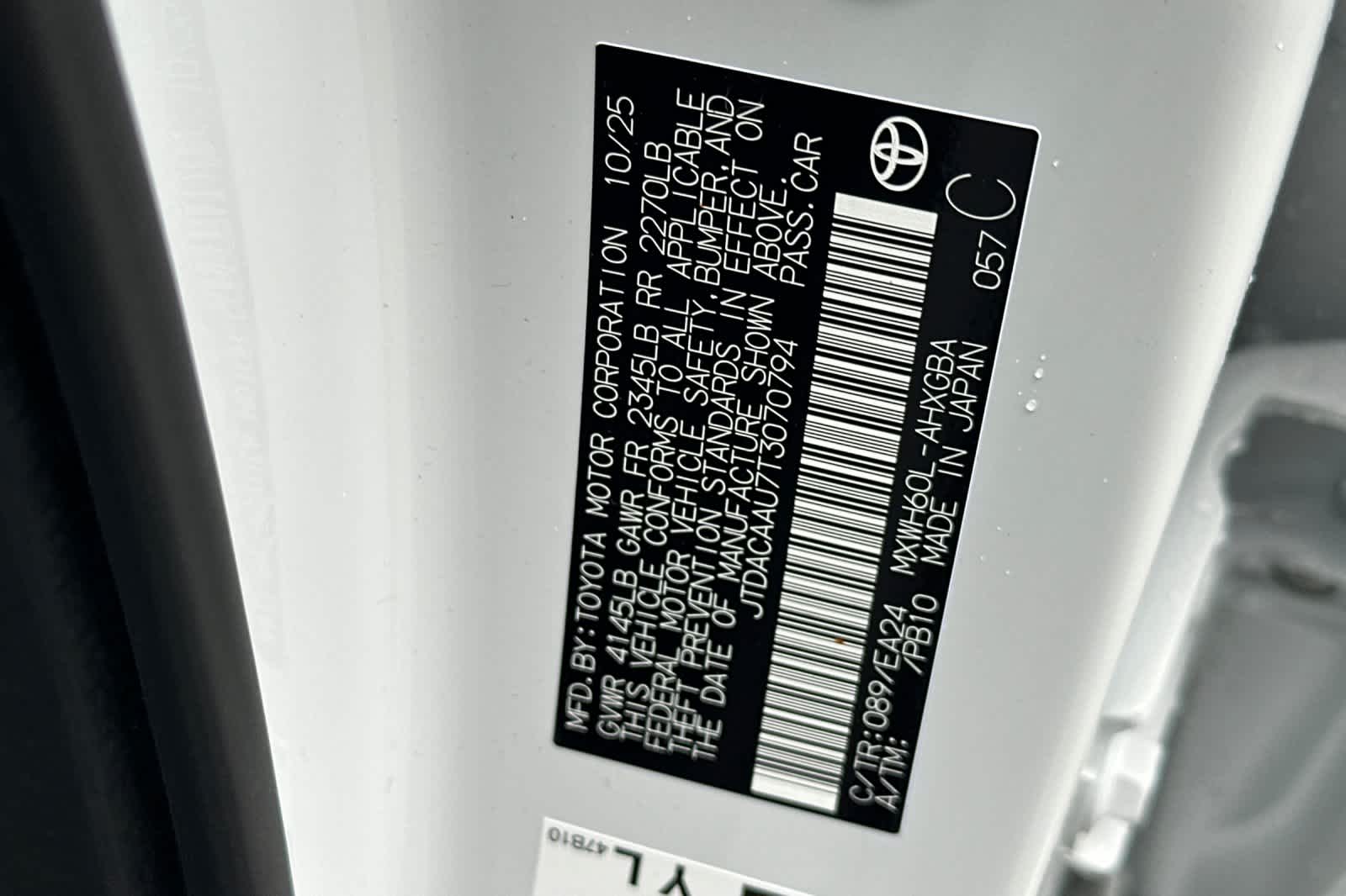 - VIN : JTDACAAU7T3070794