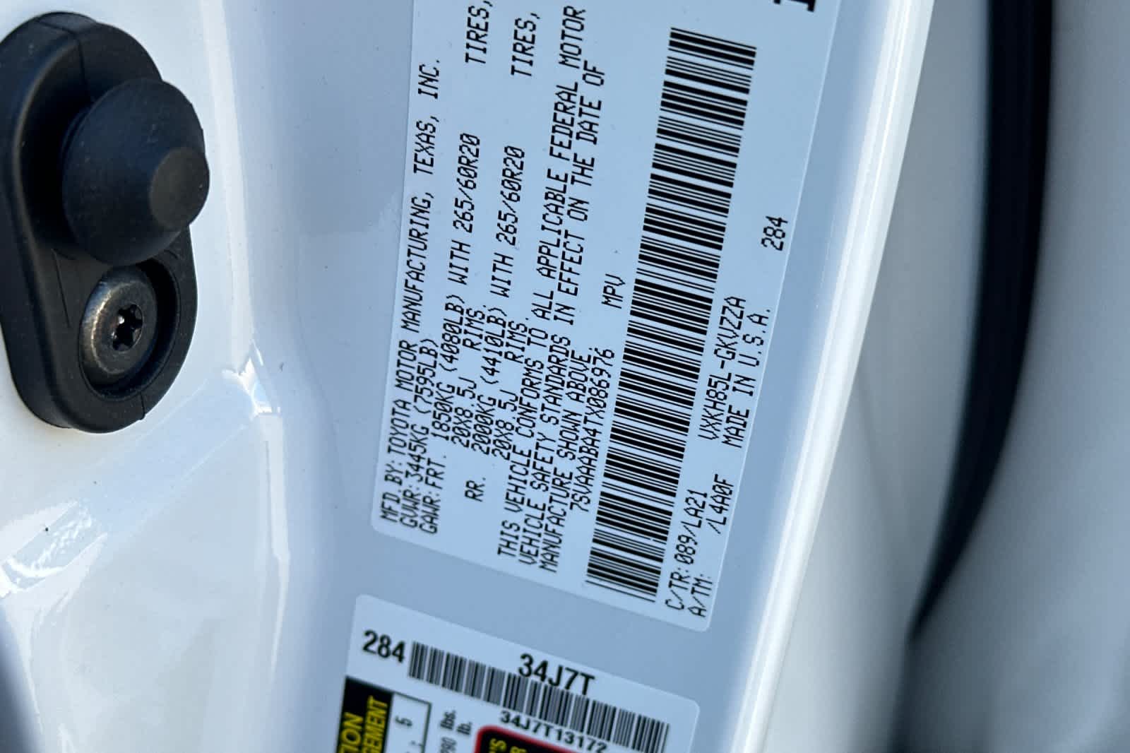 - VIN : 7SVAAABA4TX086976