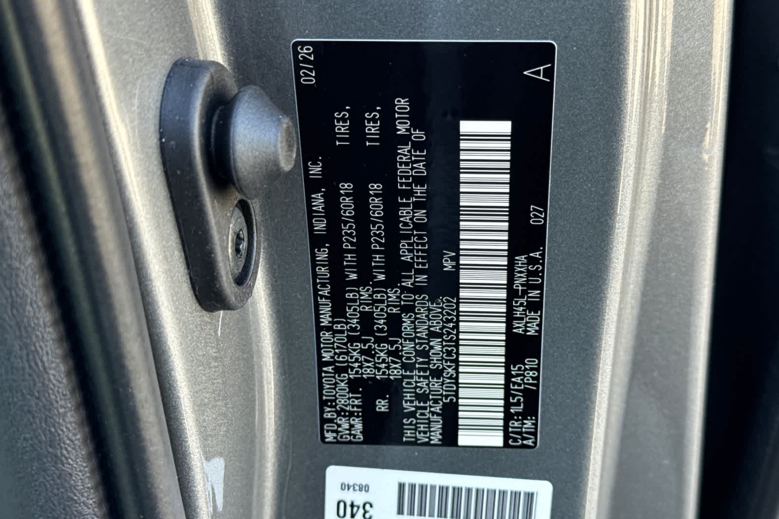 - VIN : 5TDYSKFC3TS243202