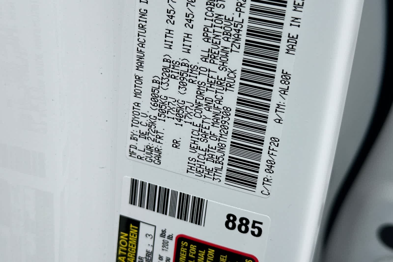 - VIN : 3TMLB5JN8TM209308