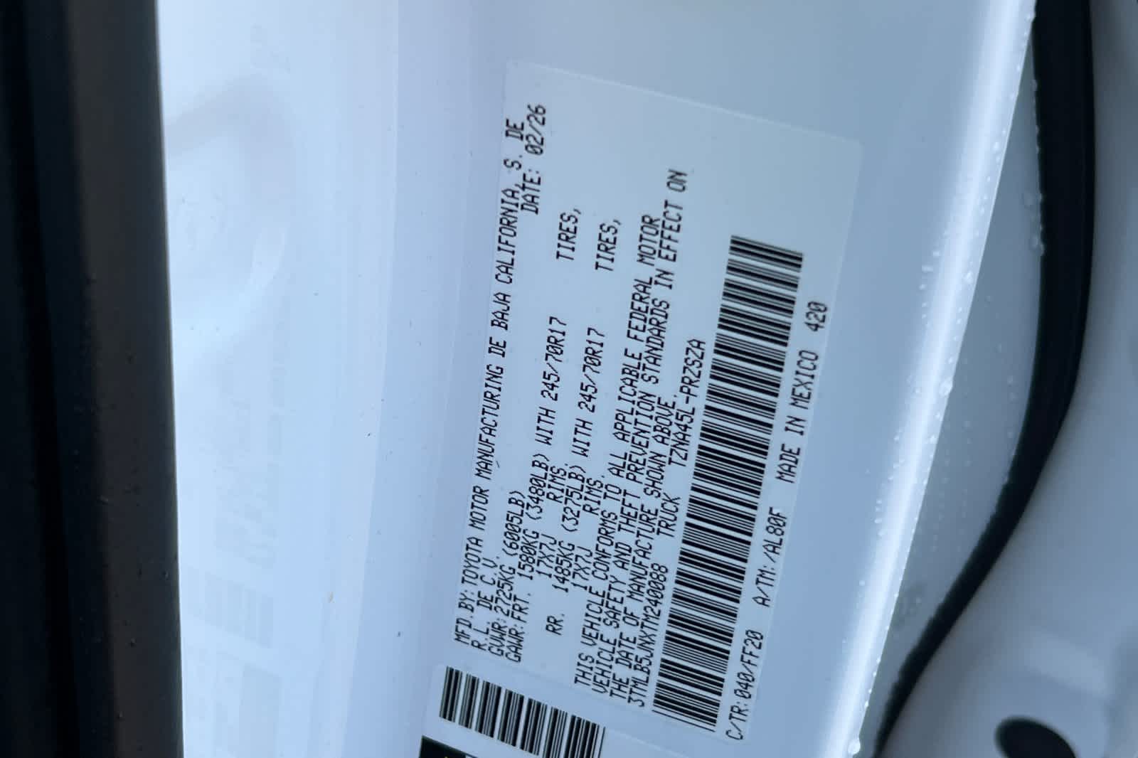 - VIN : 3TMLB5JNXTM240088