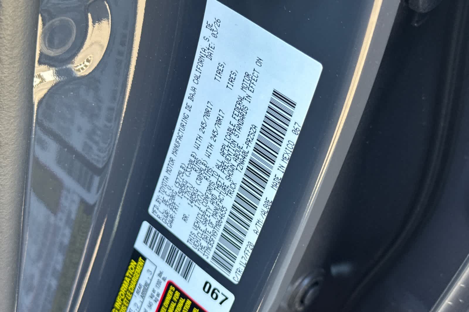 - VIN : 3TMKB5FN9TM064655