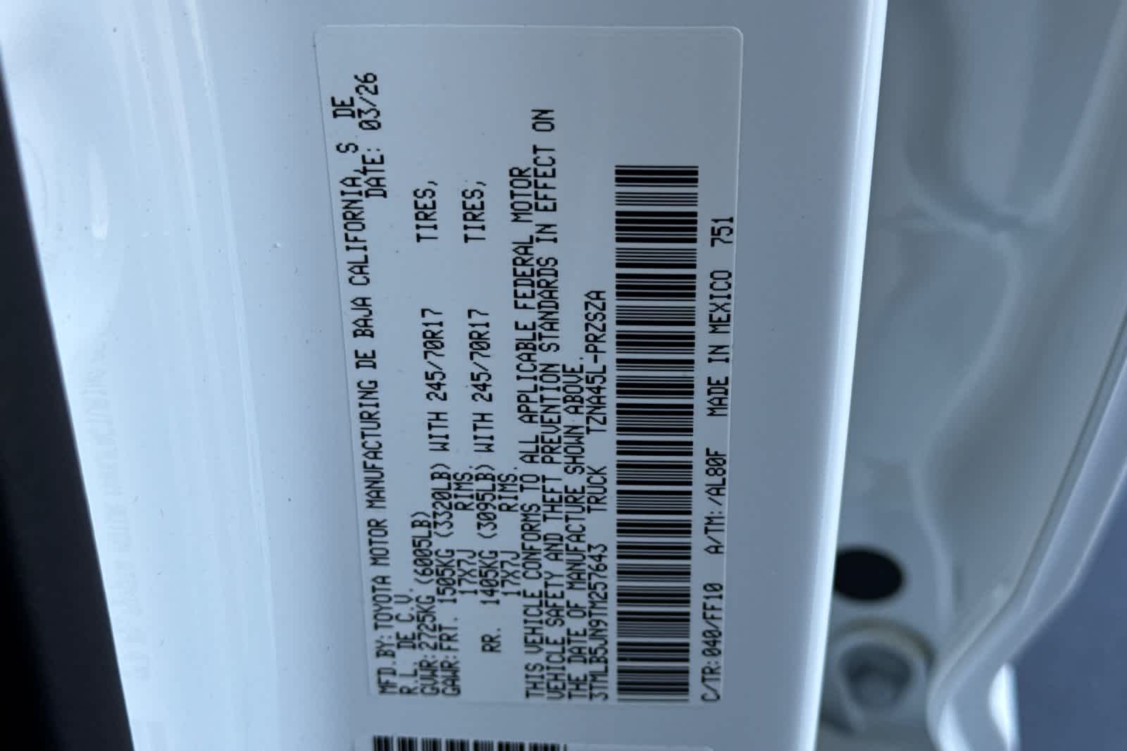 - VIN : 3TMLB5JN9TM257643