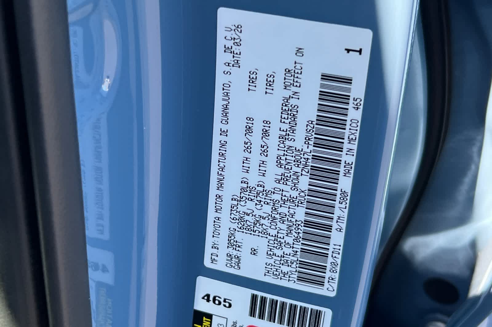- VIN : 3TYLC5LN4TT064993