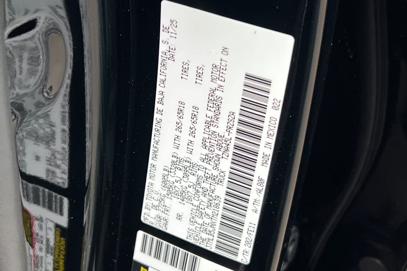 - VIN : 3TMLB5JNXTM218639