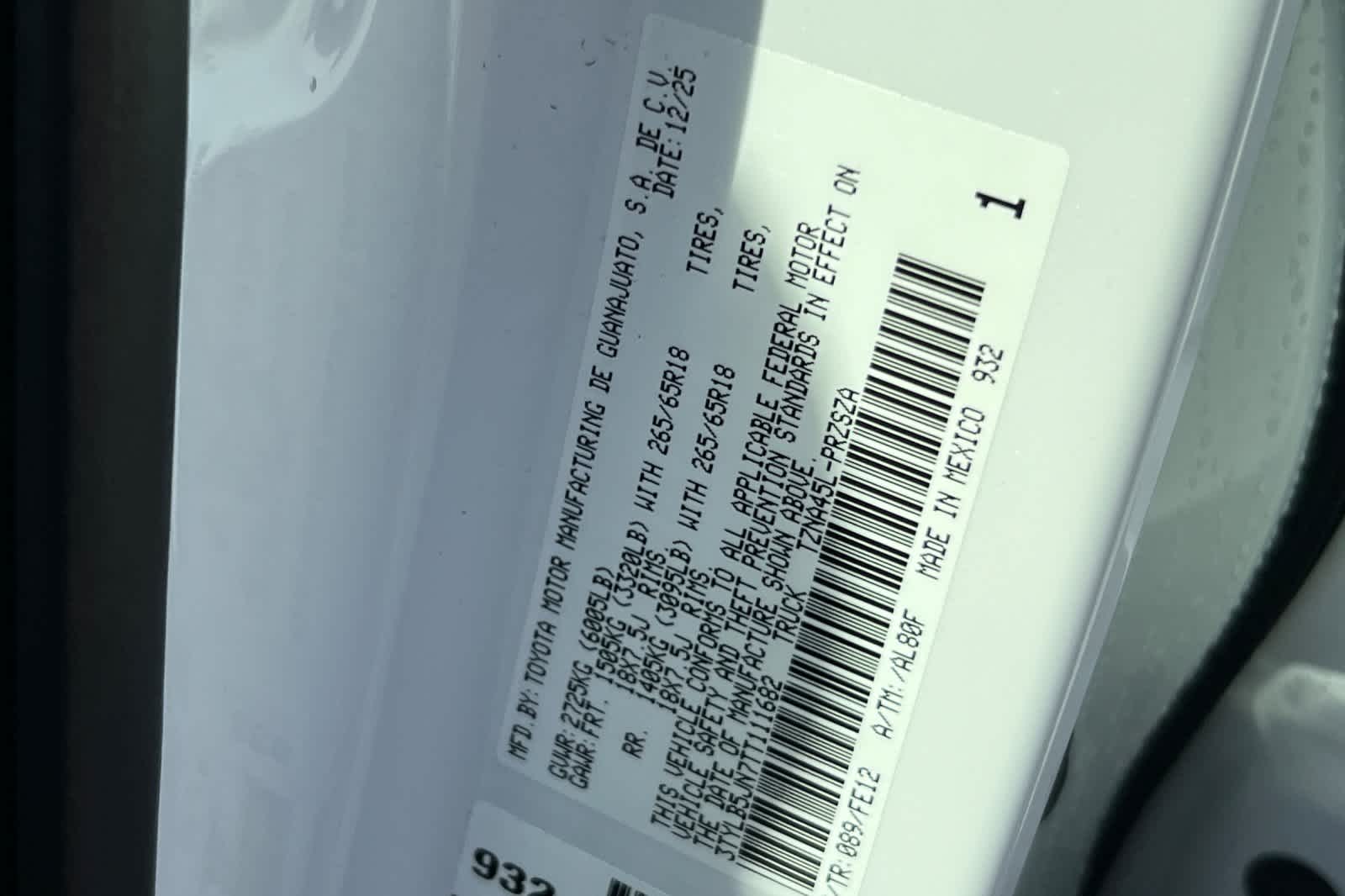 - VIN : 3TYLB5JN7TT111682