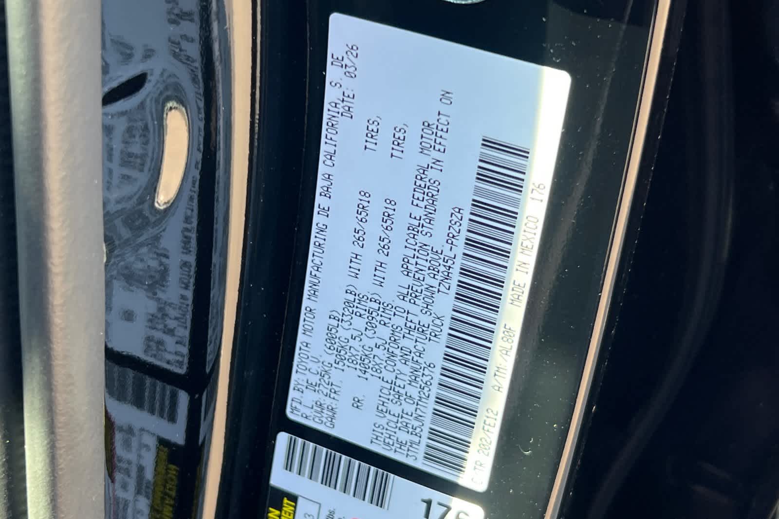 - VIN : 3TMLB5JN7TM256376