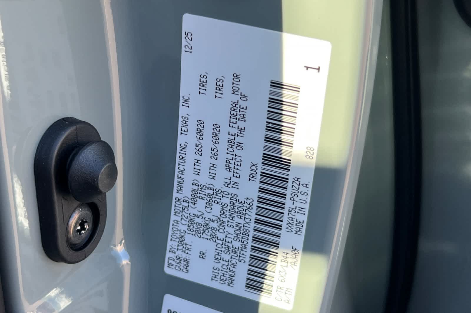 - VIN : 5TFMA5DB8TX377663