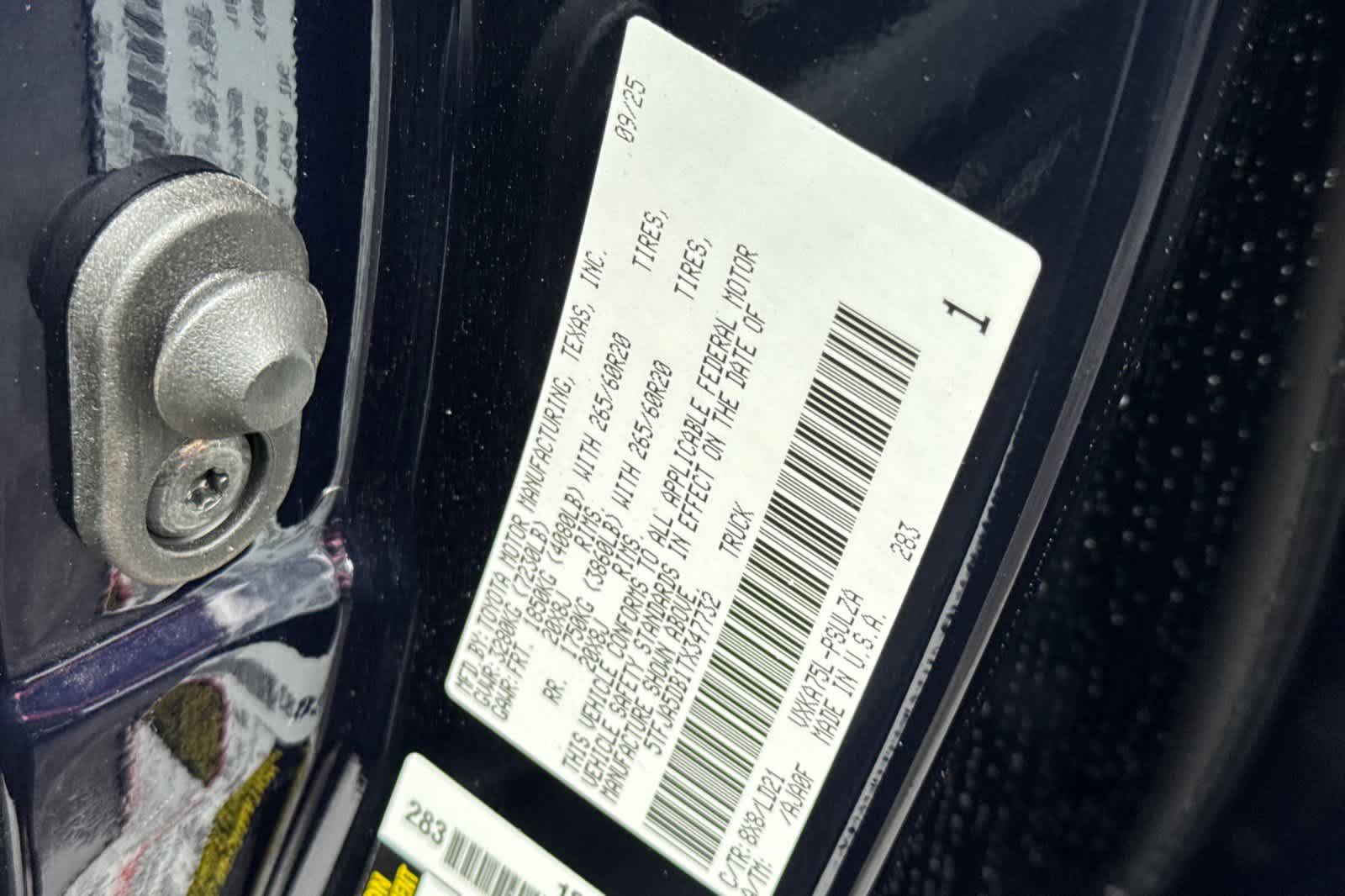 - VIN : 5TFJA5DB1TX347732
