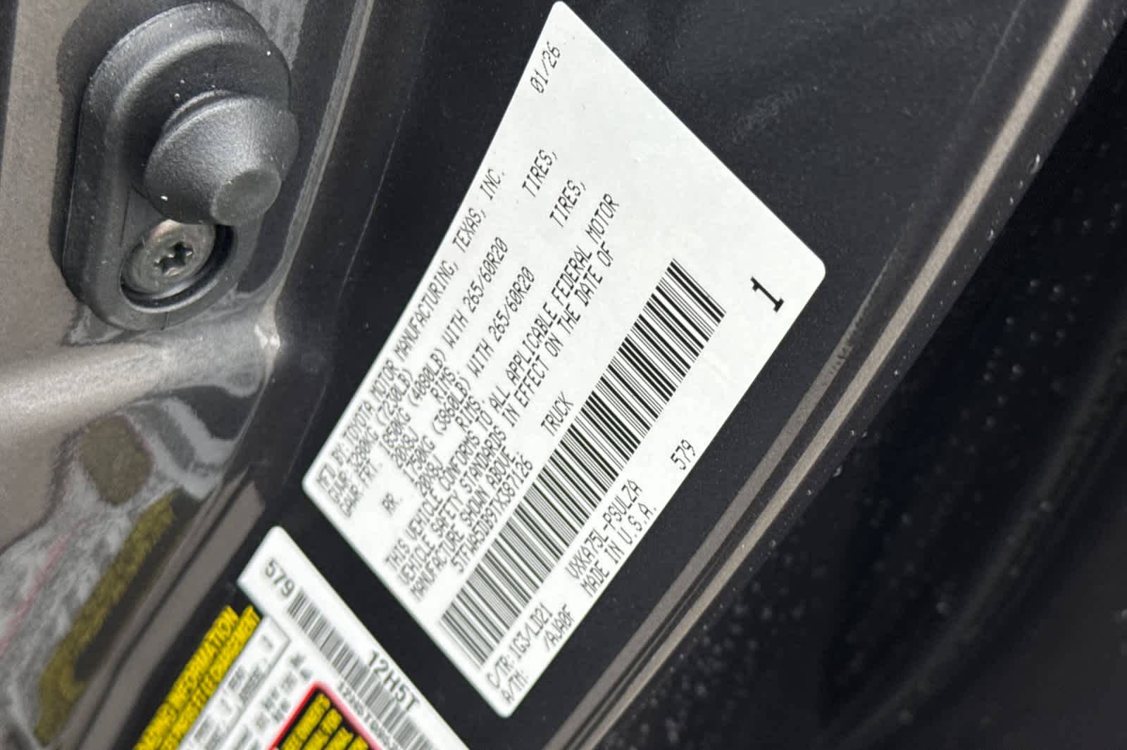 - VIN : 5TFWA5DB9TX387126
